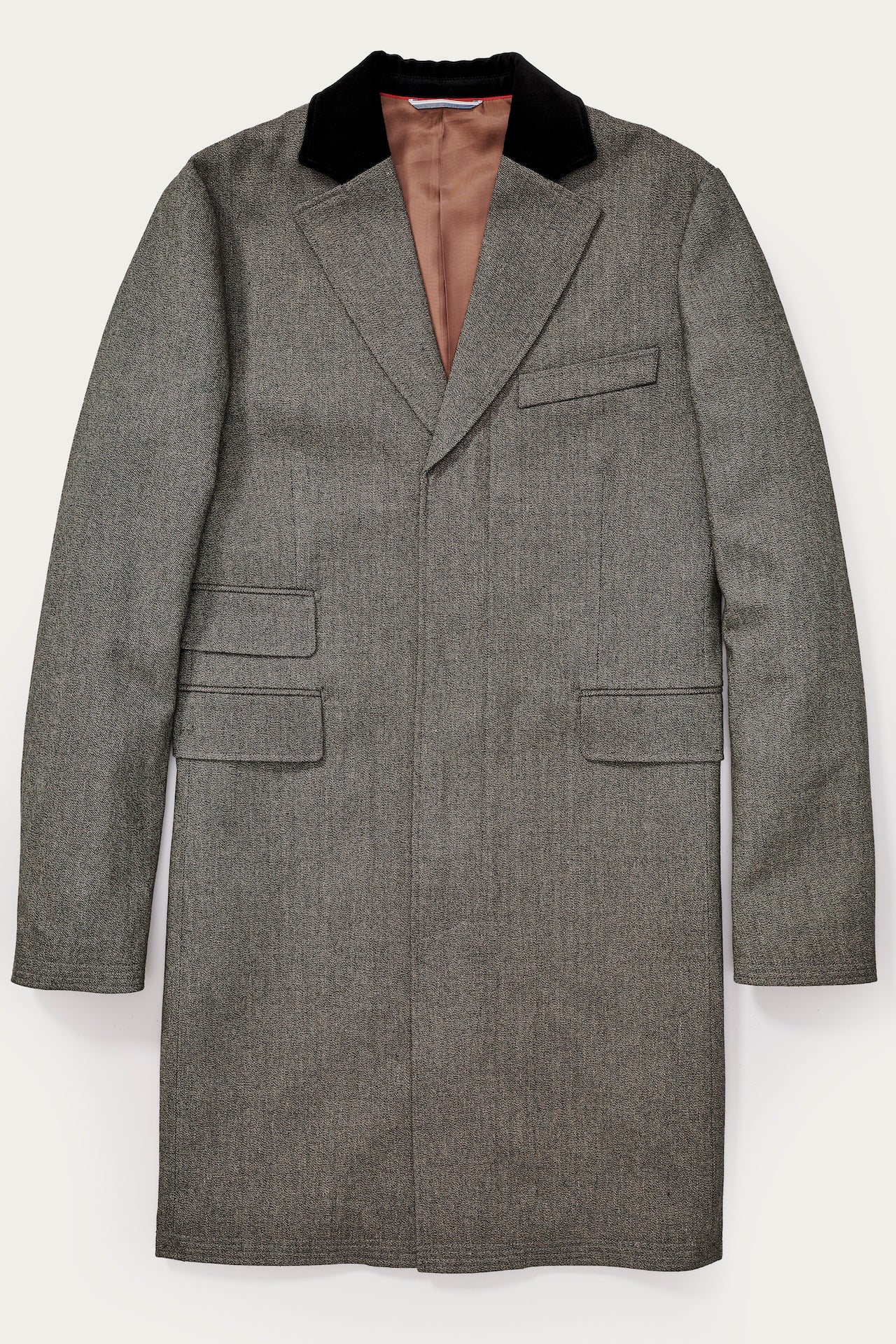 Fully lined overcoat in Japanese Covert Cloth. The collard coat became popular in the 1960s and has been beloved by the likes of Sir Winston Churchill and The Beatles — amongst other varying subcultures of the 20th century. Our version of the infamous overcoat comes in a three-quarter length with a velvet collar in a contrasting color. Hugo is made from an incredibly rich and soft wool blend from Japan.