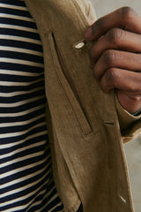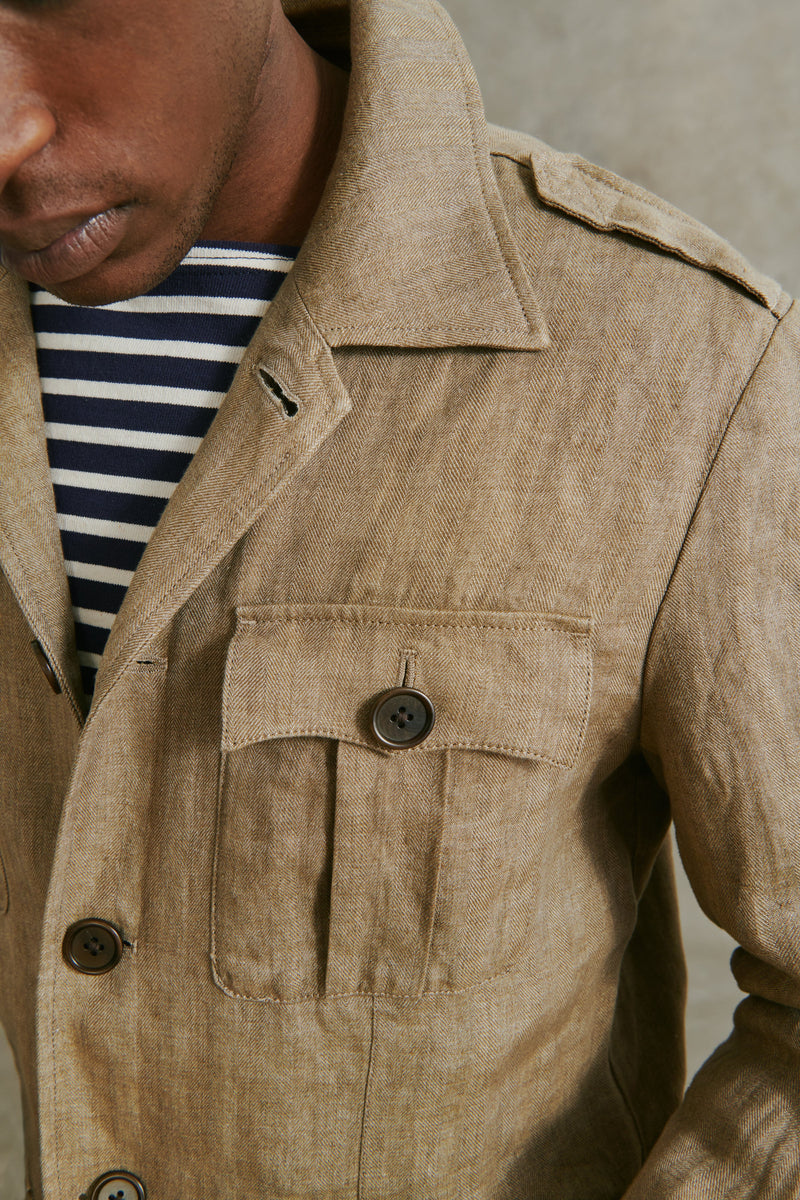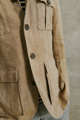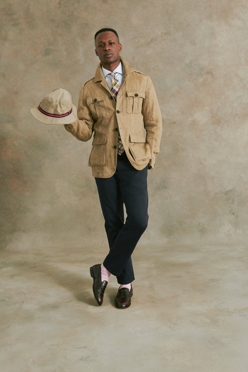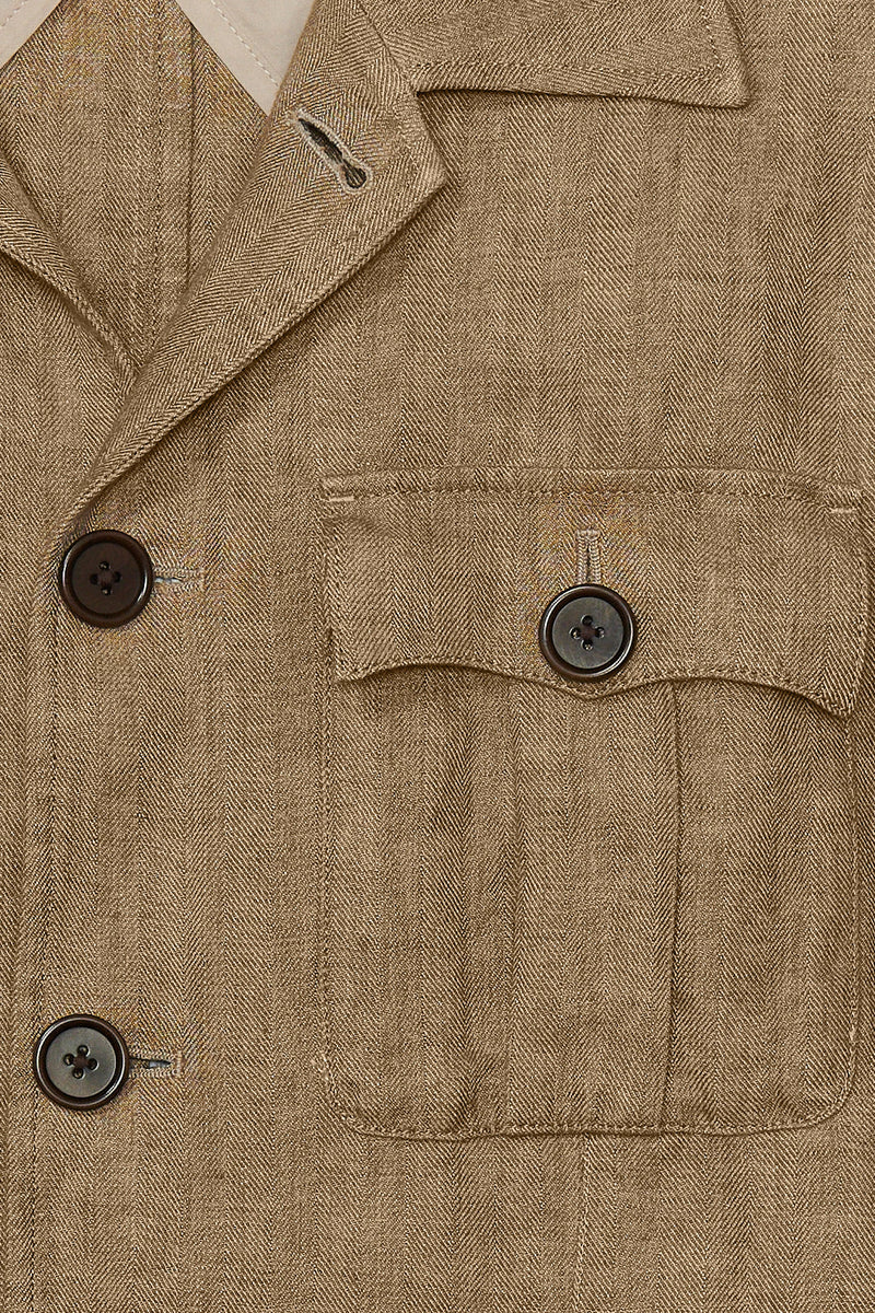 Inspired by the life and writings of the cultural enigma, Ernest Hemingway, the Marlin Linen Safari Jacket is made from 100% Italian Delave linen. Hemingway famously wrote about the life he lived — from hauling in world-class Black Marlin off the coast of Cuba or hunting wild game on the plains of East Africa. The safari jacket has a rich history in these narratives. Our take on this classic features beveled pockets on a linen herringbone pattern — light enough for sultry days and warming on those cooler nights.0